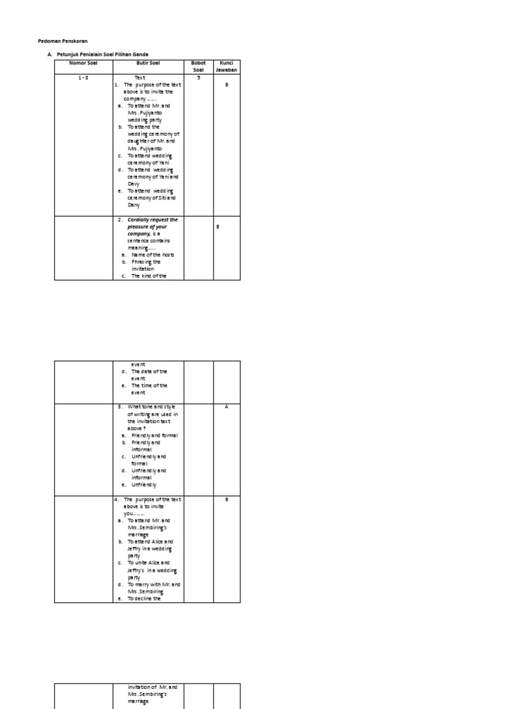Soal pilihan ganda tentang formal invitation. We did not find results for: Check spelling or type a new query. Maybe you would like to learn more about one of these?